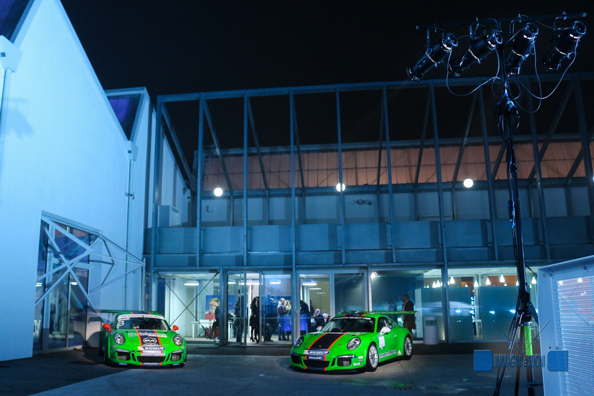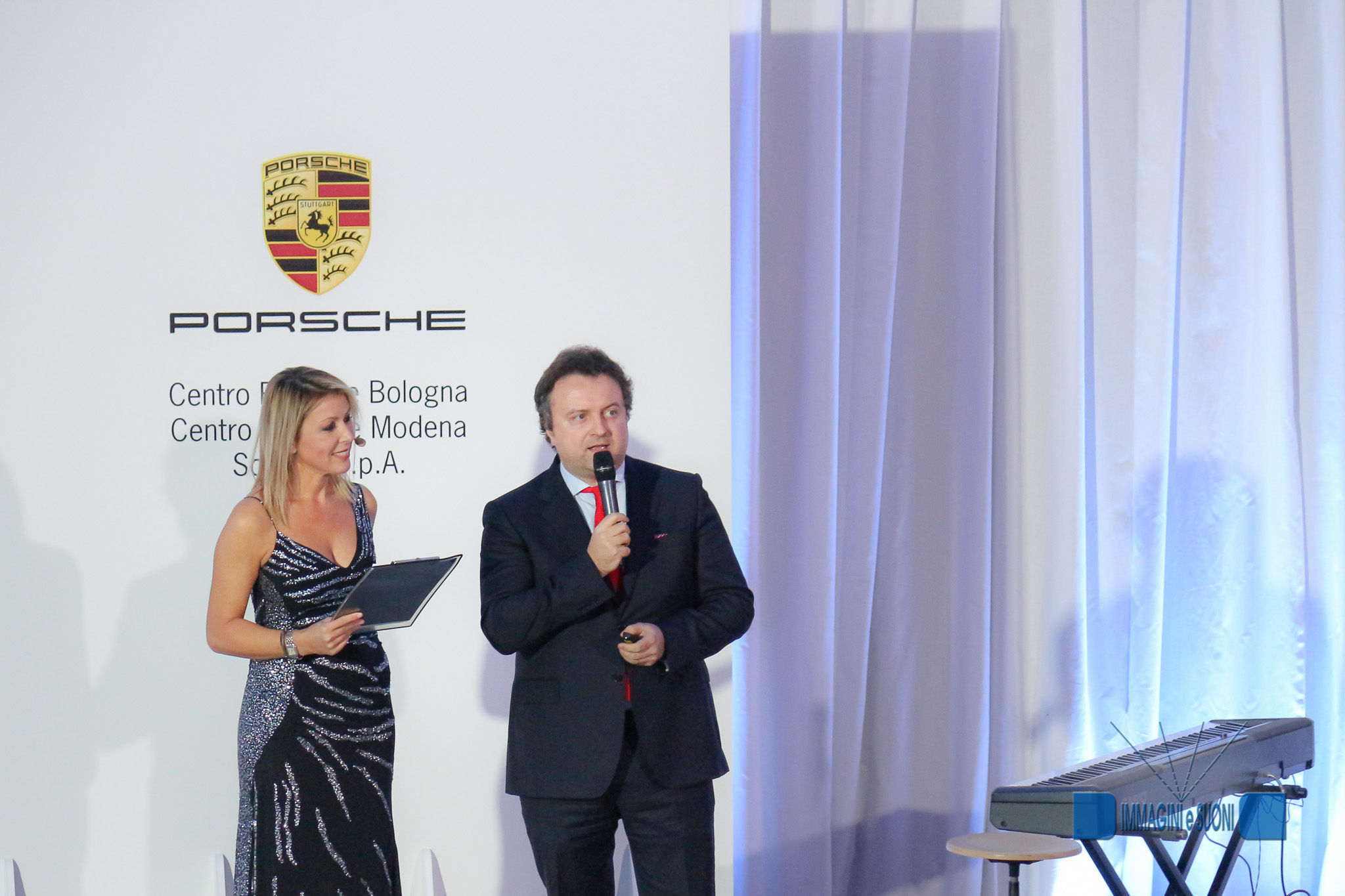 The new Porsche Carrera 911 was presented in the palace of Golinelli Foundation, an example of contemporary architecture. The forms and the lines of the building and the cars were emphasized by architectural lighting, both in indoor and outdoor spaces. Auditorium amplification for musical exhibitions. In the moment of unveiling a 4 × 4 video wall was used to make memorable the moment by all the public. Event planning and management by HBComm.