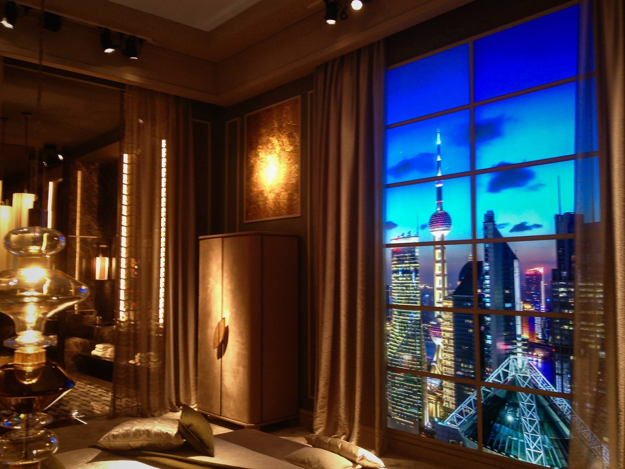 The final effect is certainly impressing: two virtual windows that open views to famous cities such as Shanghai or London.