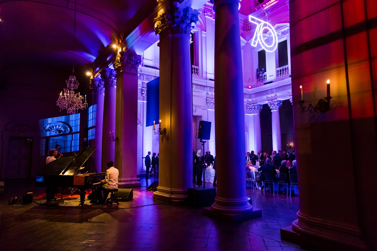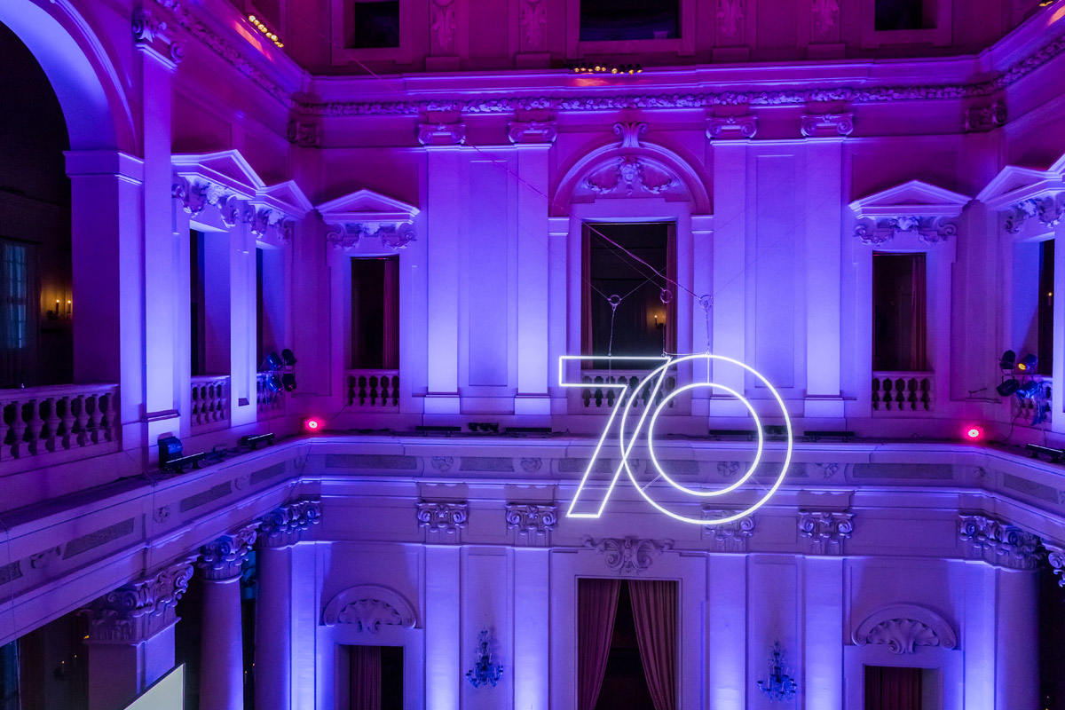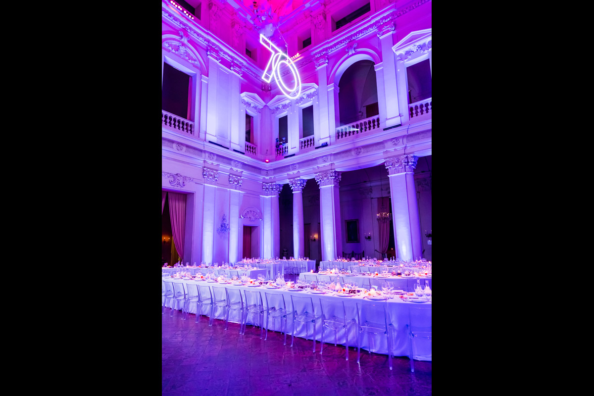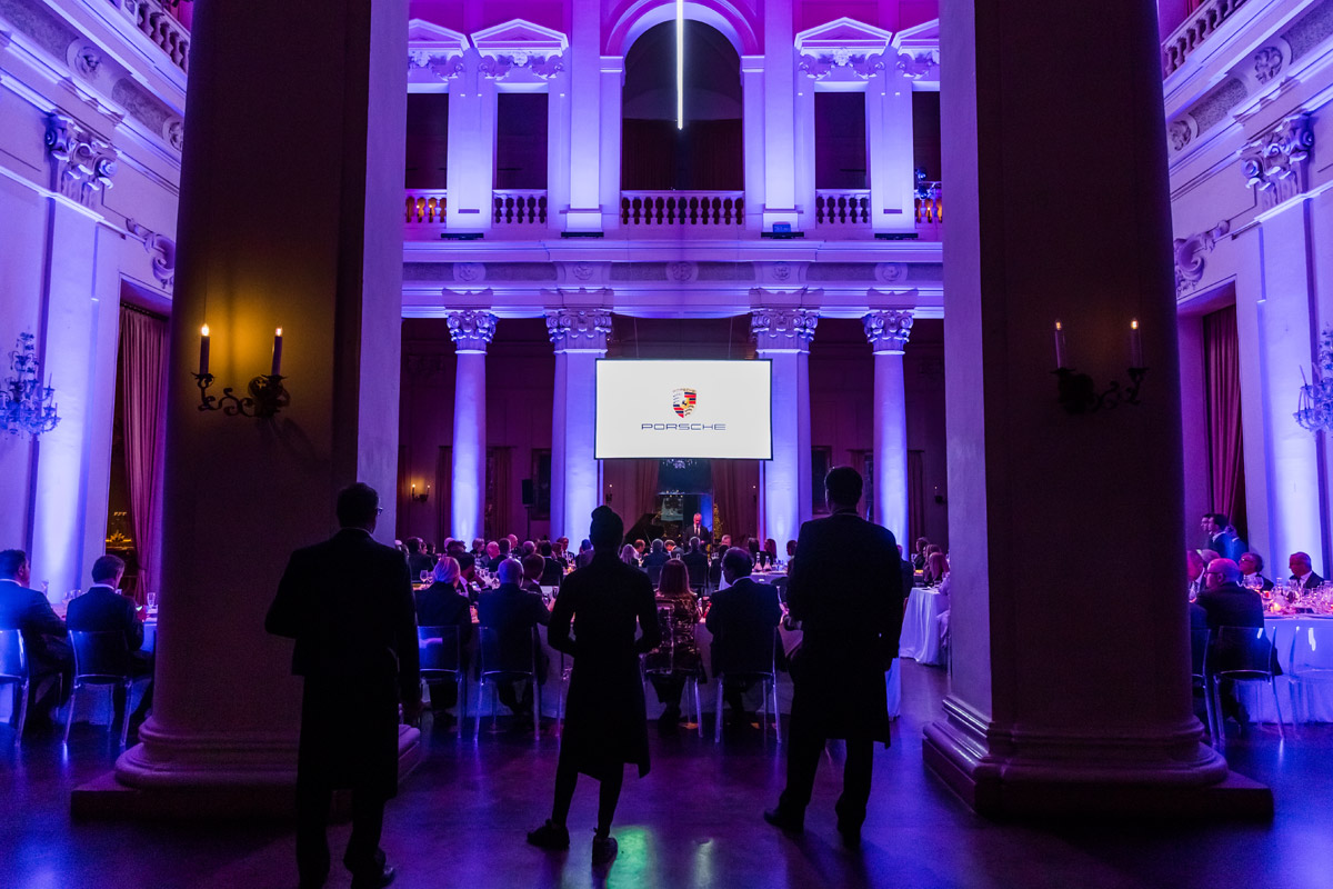 PORSCHE Italia festeggia il suo 70° con una elegante cena di gala a Palazzo Albergati. Atmosfera resa indimenticabile da luci architetturali, videoproiezioni e audio per il concentro, perfettamente amplificato ed ottimizzato per l’acustica del salone.