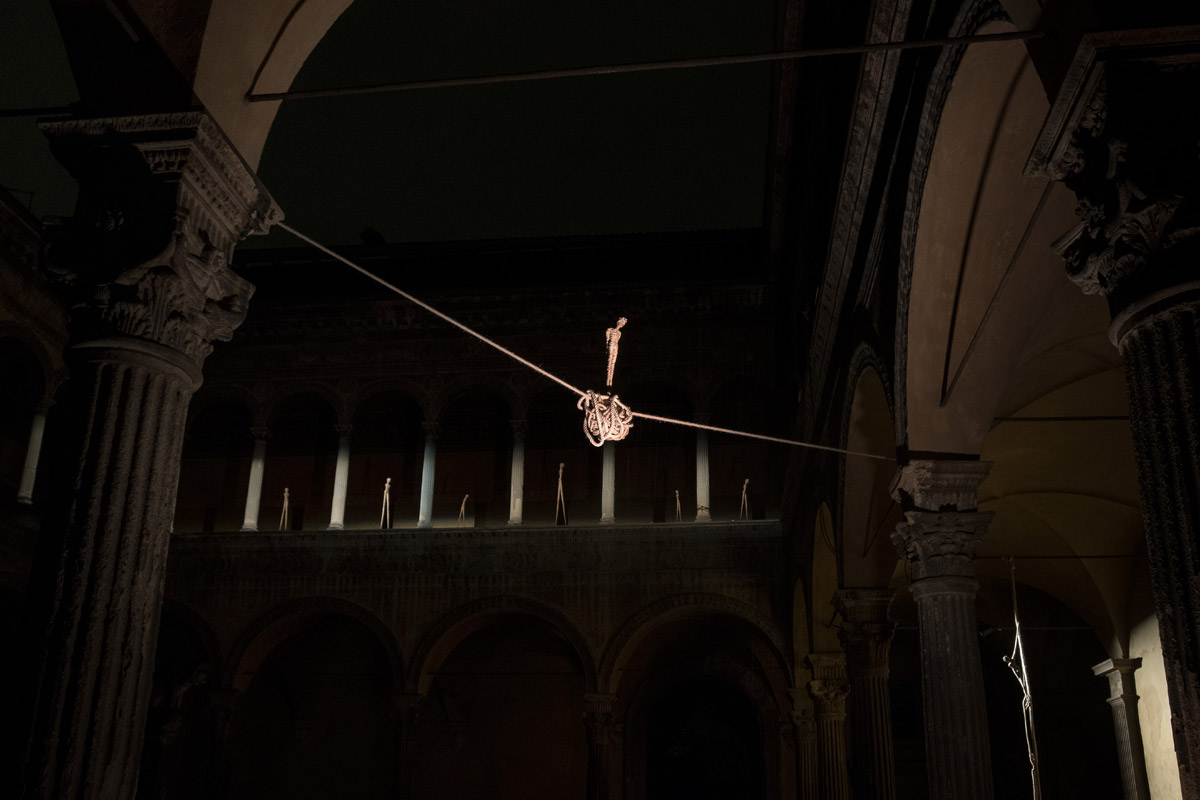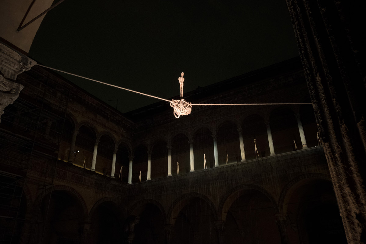 In occasione di ARTE FIERA 2018 si è rinnovata la collaborazione di PALAZZO BEVILACQUA ARIOSTI con IMMAGINI e SUONI. Nella storica cornice dell’illustre Palazzo due installazioni: “IN EQUILIBRIO“ di Gianni Asdrubali nel salone del Concilio, mentre “TWIXT LAND & SEA: TALES” di Alex Pinna ospitata nel cortile. Sapientemente illuminate per esaltarne le espressioni artistiche.