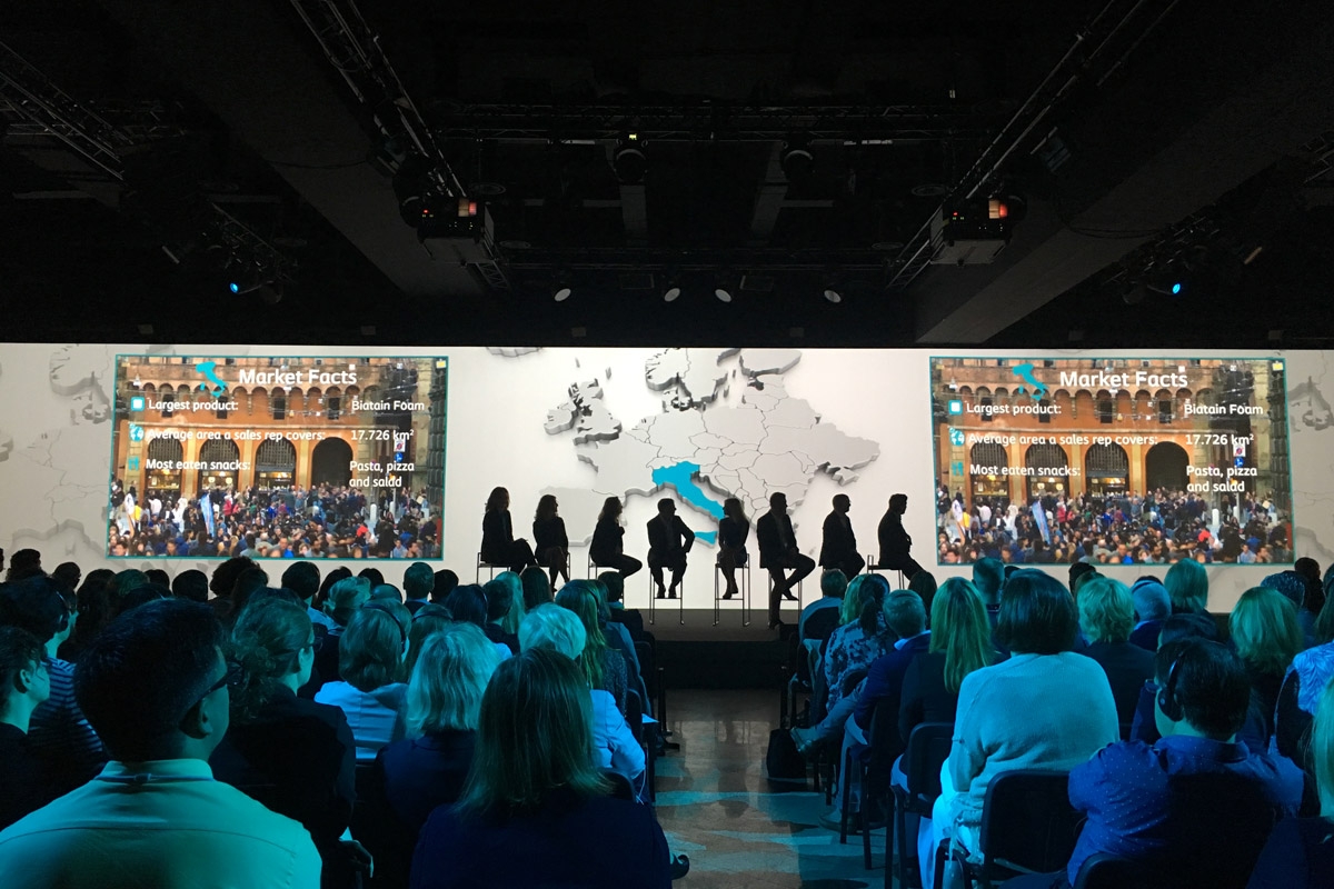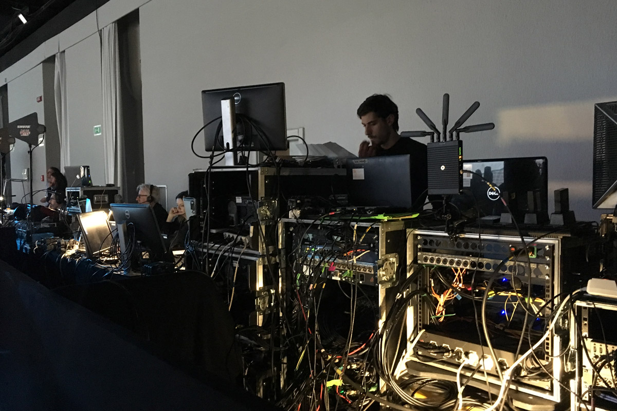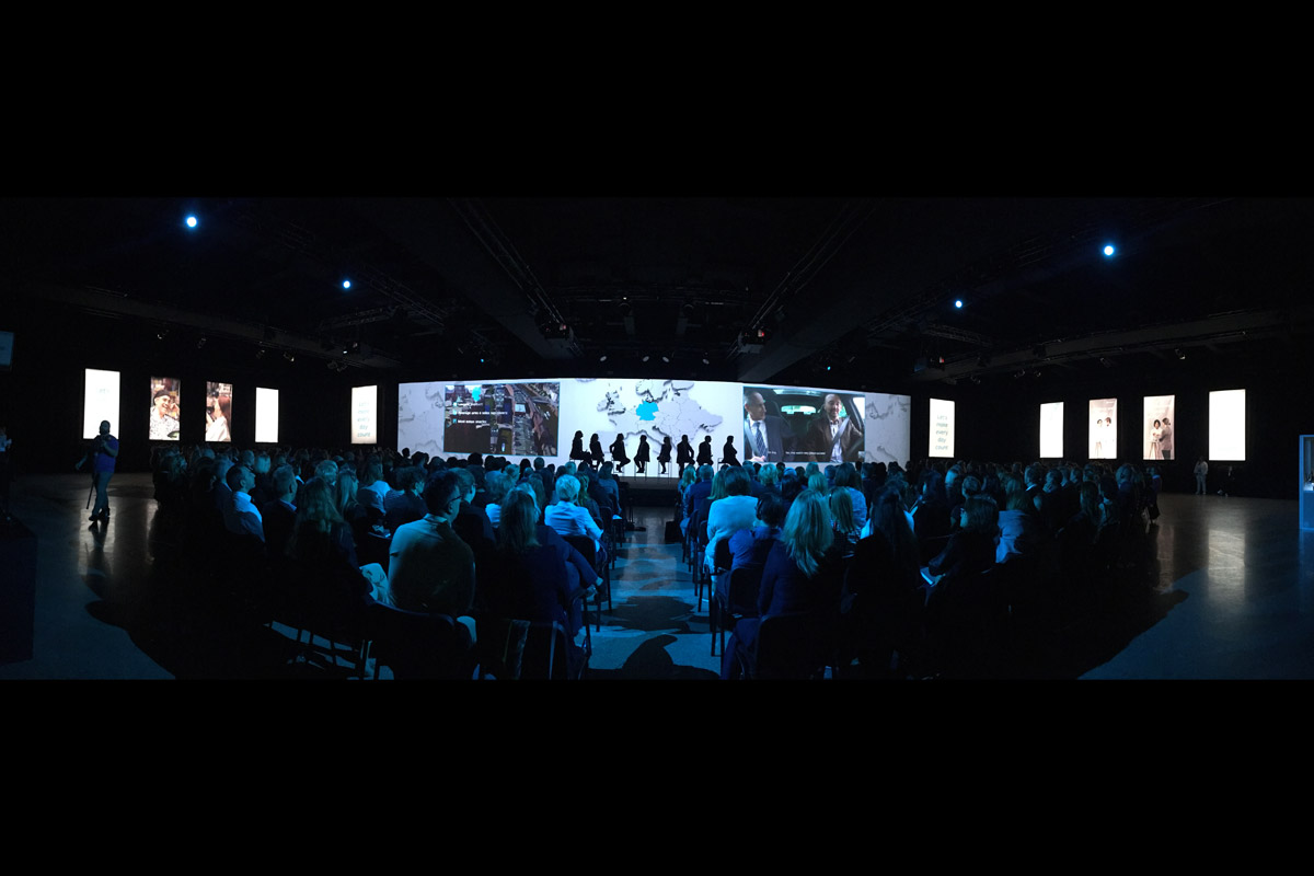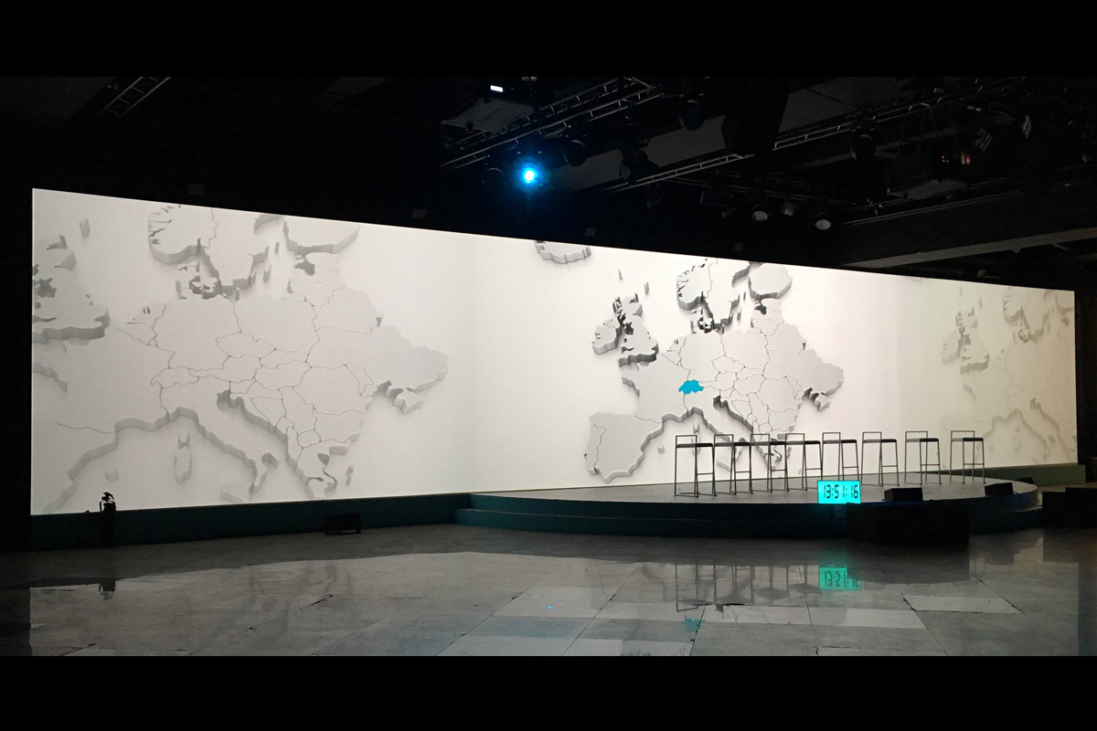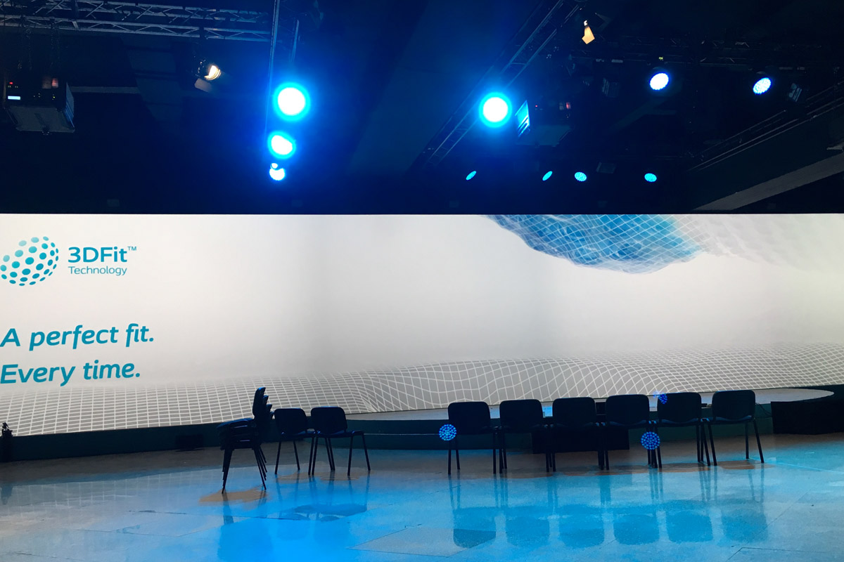 - Impianto di video proiezione atti a ricreare un’immagine unica su fondale di 22 metri di base per 4 metri di altezza.