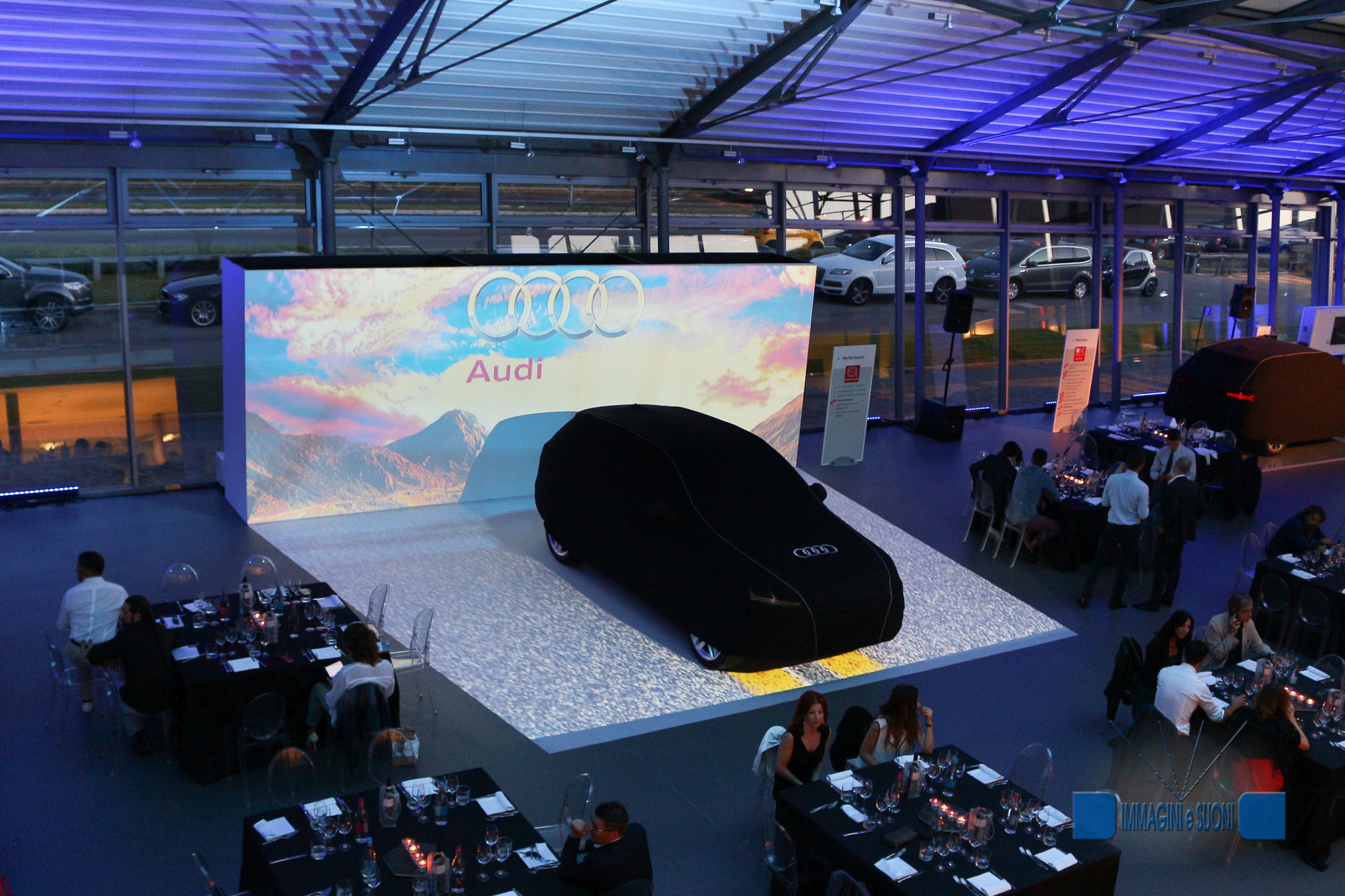 Illuminazione esterna con fari panorama. Luci emozionali per la cena di gala riservata ai clienti premium. Amplificazione musicale delle varie zone. Video mappatura della vettura e del fondale.