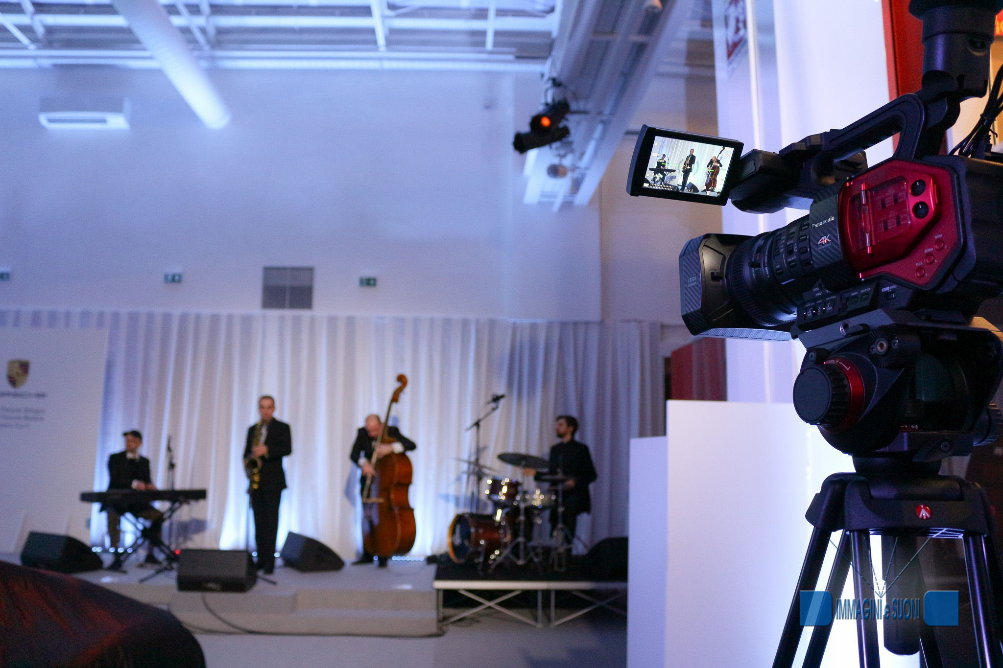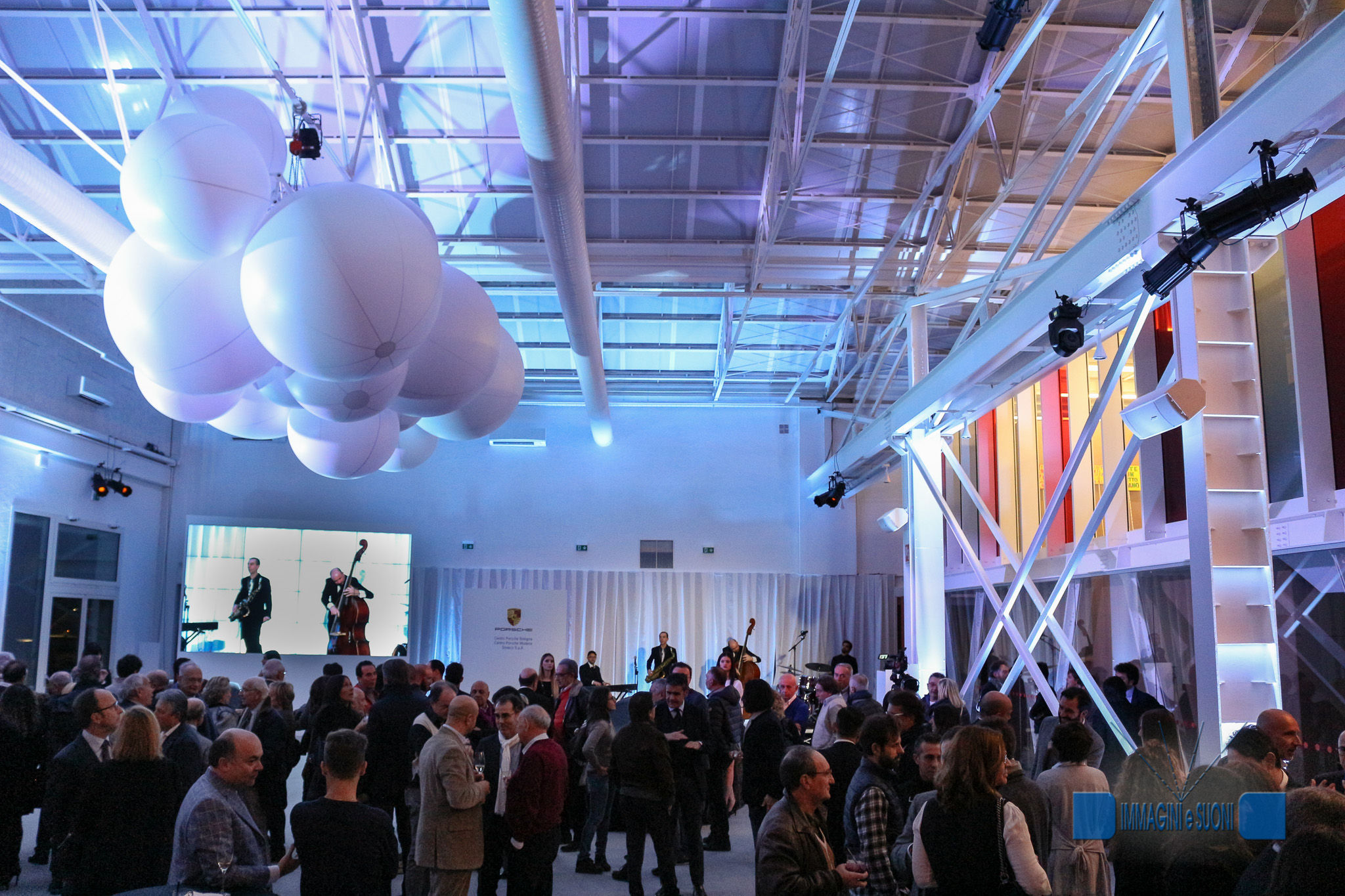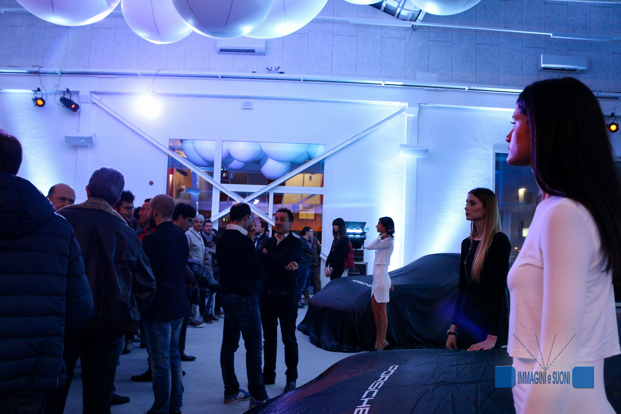 Nel nuovo e moderno edificio della Fondazione Golinelli è stata presentata la nuova Porsche Carrera 911. Illuminazione architetturale degli spazi interni ed esterni e delle auto. Amplificazione dell’auditorium per gli spettacoli musicali e presentazione del nuovo modello Porsche con l’ausilio di un videowall 4×4.